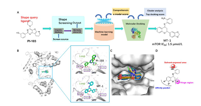 汤磊/张吉泉教授团队采用人工智能辅助药物设计(AIDD)与计算机辅助药物设计(CADD)联合策略,从150万化合物库中筛选出苗头化合物MT-1。随后采用基于结构的药物分子设计策略(SBDD),经多轮结构优化,最终获得高选择性mTOR抑制剂MT-44。该化合物具有纳摩尔水平的mTOR抑制和TNBC细胞增殖抑制活性,能有效阻断PI3K/Akt/mTOR信号通路,并在MDA-MB-231异种移植小鼠模型中展现出强效抗肿瘤效应。机制研究显示,MT-44在诱导肿瘤细胞自噬的同时,激活模式识别受体TLR2,上调cGAS/STING信号通路,并诱导细胞免疫原性死亡(ICD)。