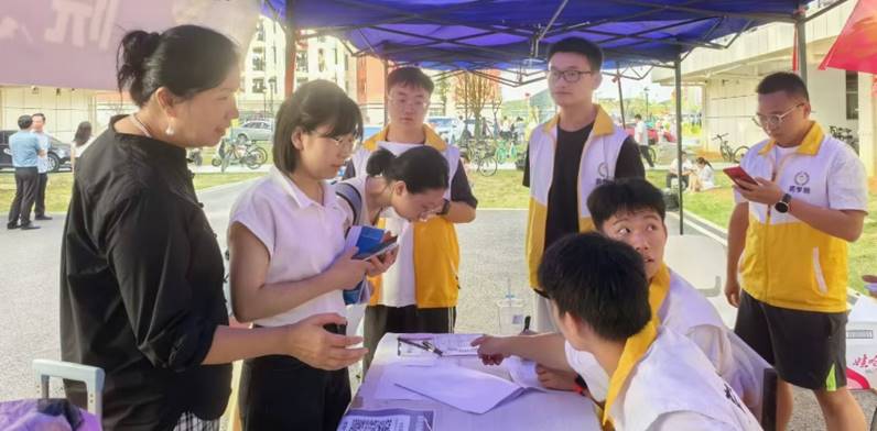志愿者们主动接过沉重的行李,一路引领新生们完成报到的各项流程。他们耐心地解答问题,细心地介绍校园的每一个角落。从教学楼到宿舍,从食堂到图书馆,他们的身影无处不在。在报到现场,志愿者们忙前忙后,维持秩序、分发资料,确保一切工作都有条不紊地进行。他们用自己的行动,让初来乍到的新生及家长们感受到了学院的关怀与温暖。