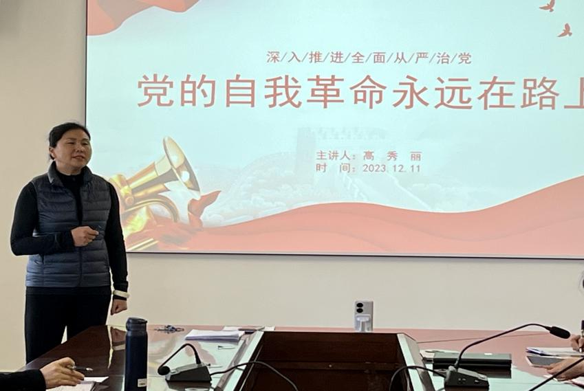 高秀丽书记以《党的自我革命永远在路上》为题,从“勇于自我革命是党的鲜明品格”、“自我革命是跳出历史周期率的必然选择”以及“深入把握自我革命的实践要求”三个方面紧扣主题,结合k1体育实际,带领大家学习重温党的二十大报告。