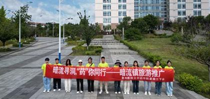7月11日上午,“暗流”寻洞,“药”你同行——暗流镇旅游推广社会实践队由k1体育辅导员符凡叶带队,共计12人,前往清镇市暗流镇开展社会实践活动。
