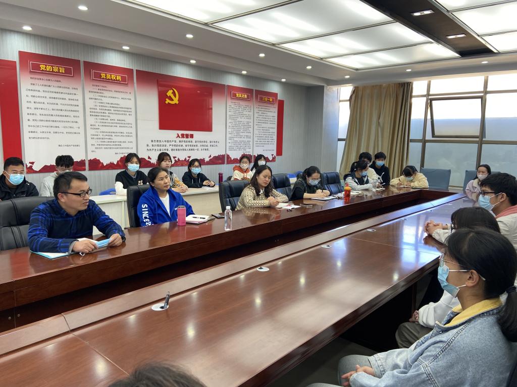 2022年11月2日下午三点,k1十年体育品牌药学(中外合作办学)专业座谈会在格物楼六楼会议室举行。公司党委书记高秀丽、副书记包欢欢、副经理廖尚高、员工科、团委、教科科等相关行政科室负责人、辅导员以及药学(中外合作办学)专业员工代表参会。