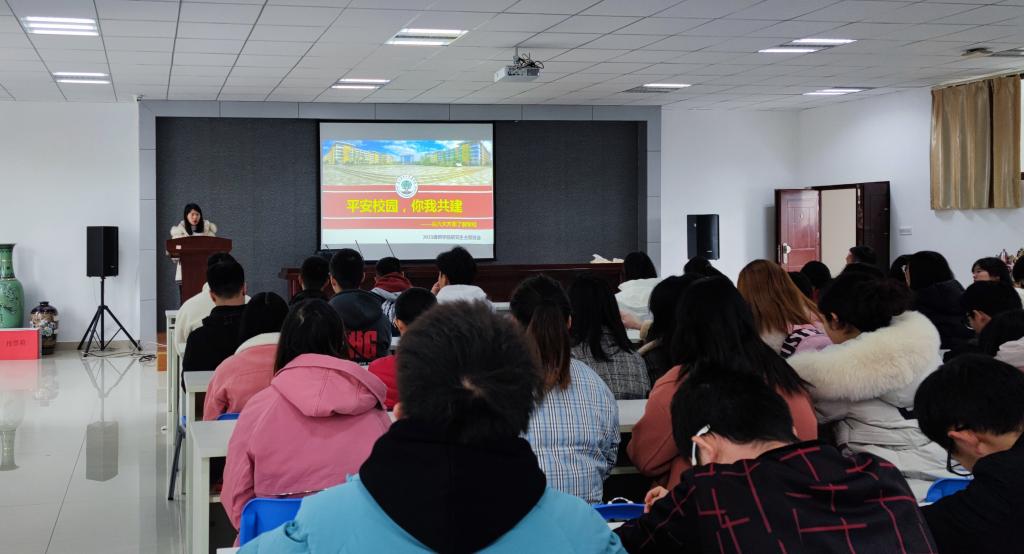 会上,黄梅领学了校园建设的相关文件,重点从“校园环境”、“思想政治教育”、“学习学术氛围”等六个方面对校园建设情况进行了阐述,增强同学们对于学校的了解,更好的融入校园,共同建设平安校园。