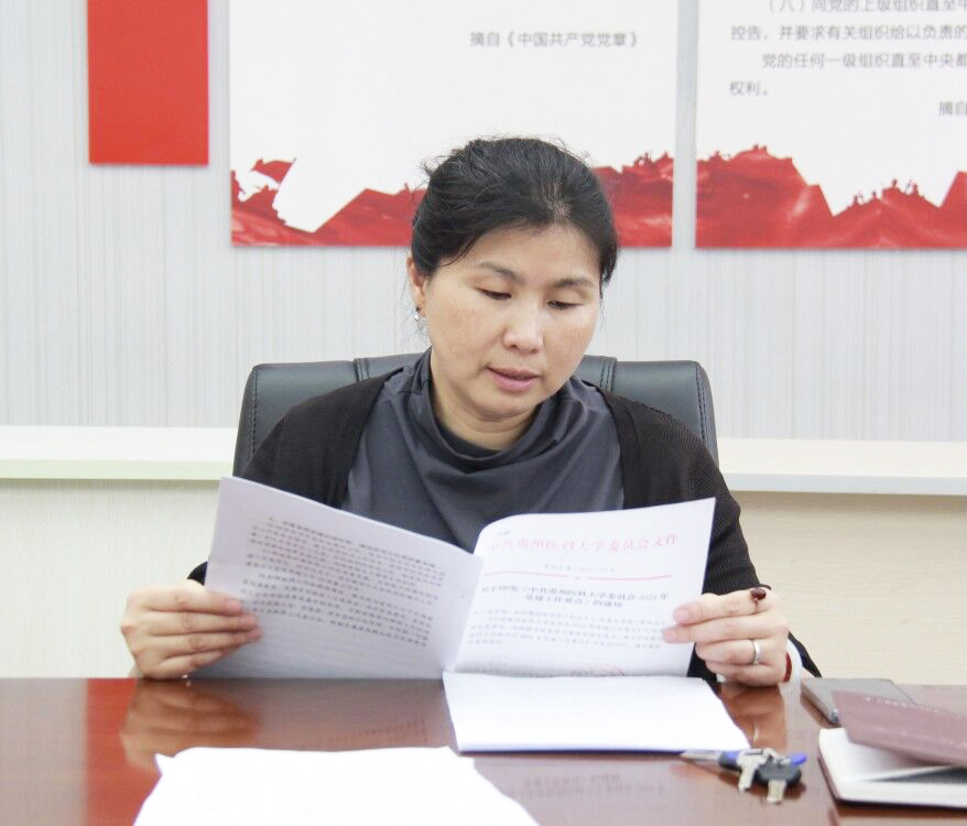 教工四支部书记、临床药学教研室负责人张彦燕博士,通过对改革开放新时期历史的专题学习并结合自身岗位工作职责,以《学党史悟思想增进对党的情怀》为题做了交流发言;微生物与生化学教研室负责人陈岩勤博士也谈了自己的学习心得。