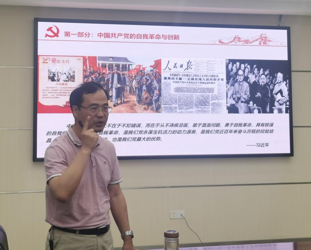 根据《关于在党史学习教育和“牢记殷切嘱托、忠诚干净担当、喜迎建党百年”专题教育中组织开展“党课开讲啦”活动的通知 》(贵医党校〔2021〕2号)总体安排,5月13日下午14:00,k1体育经理沈祥春在南校区格物楼6楼会议室以“坚定四个自信,文化自信探索生命全周期认知:读与思”为题为大家带来一场精彩的思政课,公司领导班子成员、教职员工代表、员工党员代表参加了此次培训。