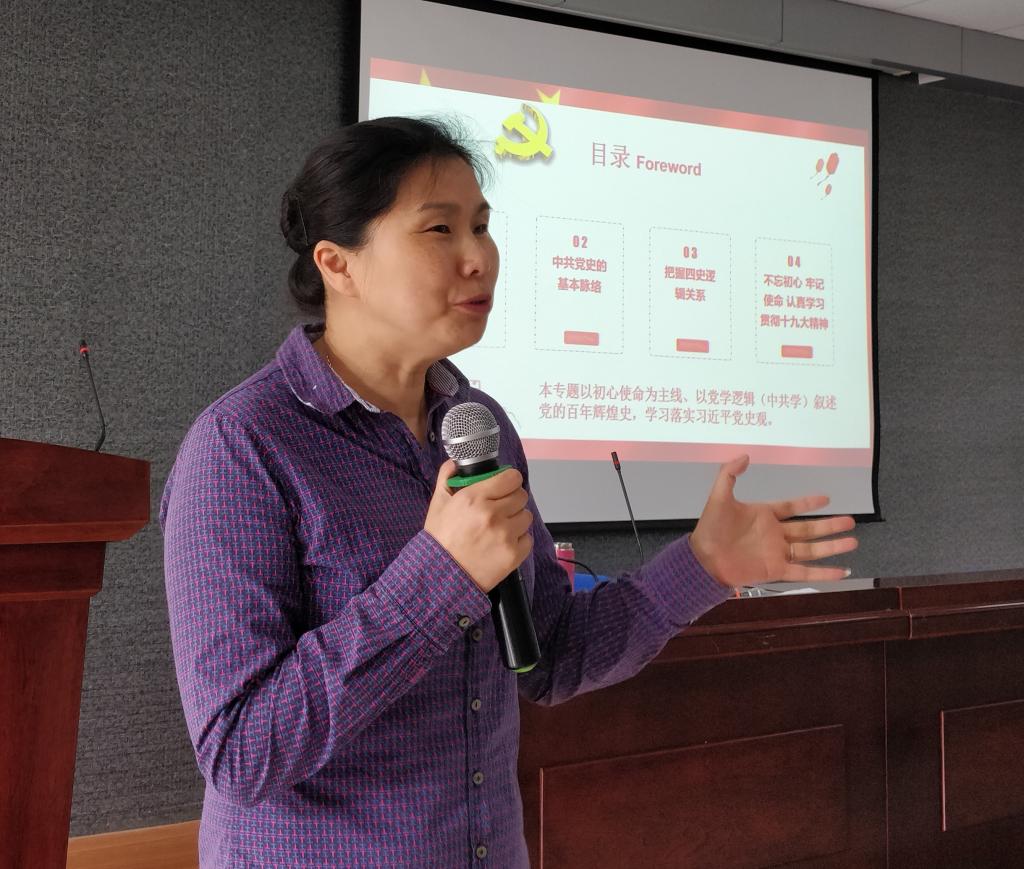 根据《关于在党史学习教育和“牢记殷切嘱托、忠诚干净担当、喜迎建党百年”专题教育中组织开展“党课开讲啦”活动的通知 》(贵医党校〔2021〕2号)总体安排,5月11日上午9:10,公司党委书记高秀丽在南校区格物楼6楼多功能厅上了题为“不忘初心 牢记使命——学习中国共产党百年辉煌史”的党课,党委中心组成员、院行政领导、全院教职员工、员工党员代表聆听了这堂深动的党课。