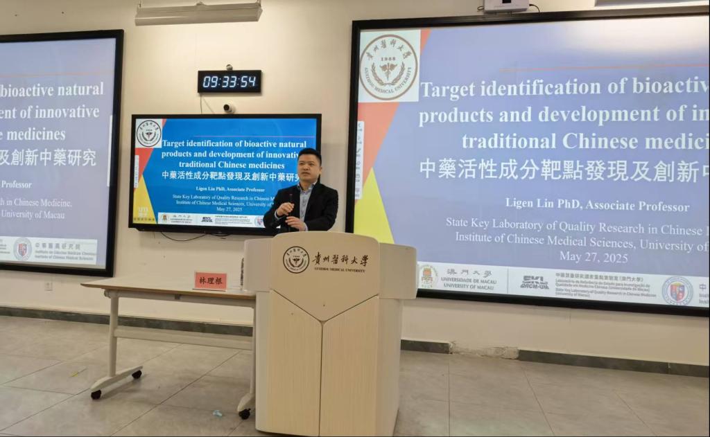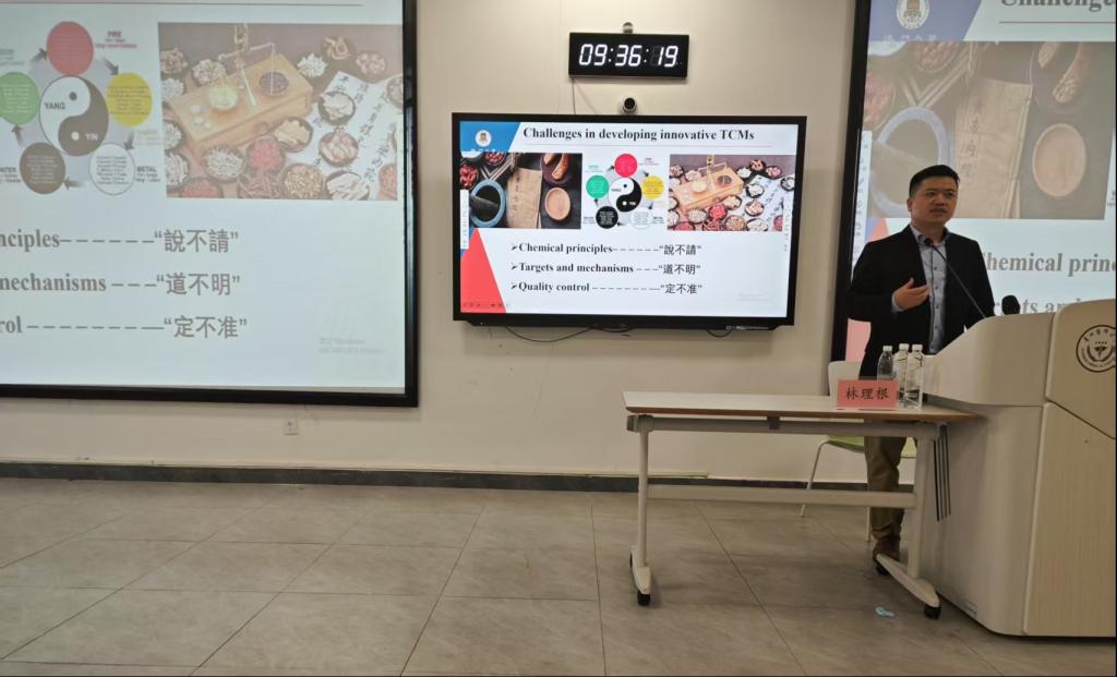 2025年5月27日上午,澳门大学健康科学学院药物科学系副主任林理根教授在k1体育致知楼L108教室作了题为“中药活性成分靶点发现及创新中药研究”的专题讲座,该讲座由k1体育副经理廖尚高教授主持。