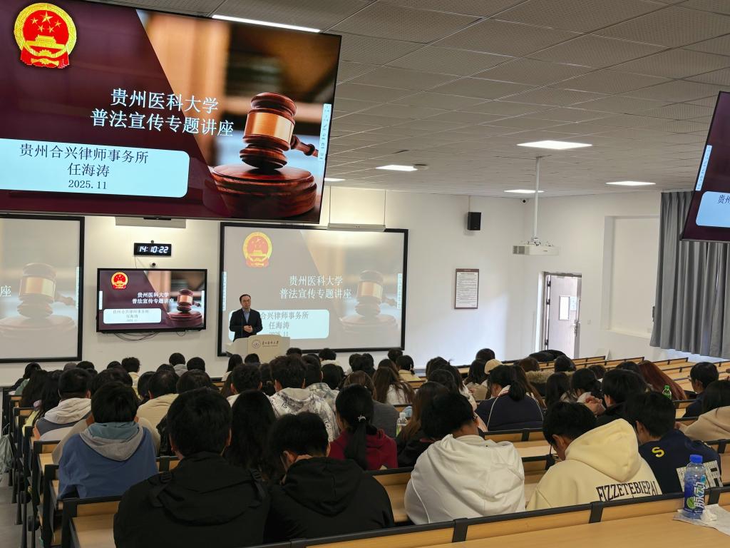 为全面提升师生法律素养,培养法治思维,有效预防在学术研究、日常生活及未来求职过程中可能面临的法律风险,2025年11月14日,k1体育在致知楼L108教室成功举办了法律宣传讲座。本次活动特邀贵州合兴律师事务所任海涛律师担任主讲。公司党委副书记包欢欢主持活动。